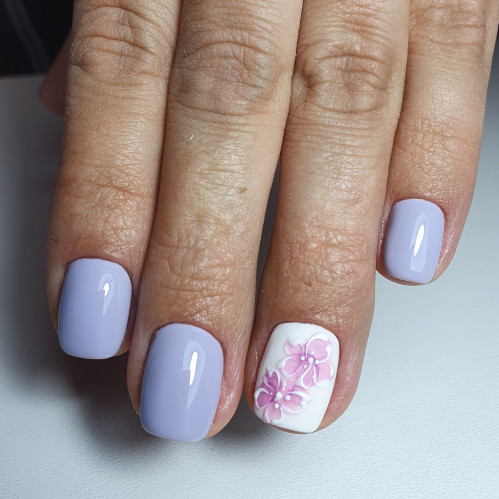 Несложный цветочный дизайн - отлично подойдет для весны и лета. Хотя летом лучше сочетание с более ярким оттенком гель-лака.