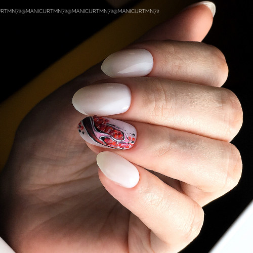 Молочный оттенок гель-лака с еле заметным рисунком смотрится просто великолепно.