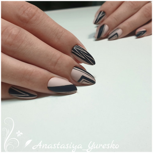 Четкие границы цвета в таком абстрактном рисунке совершенно ни к чему. Думаю, такой маникюр уже немного устарел.